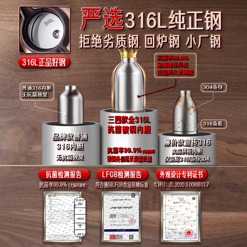 三四钢®316L不锈钢保温壶2025新款家用热水瓶保温水壶大容量暖壶