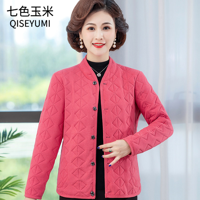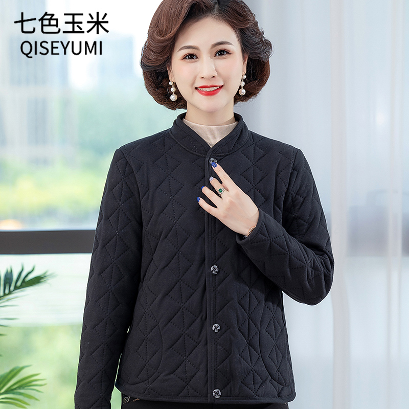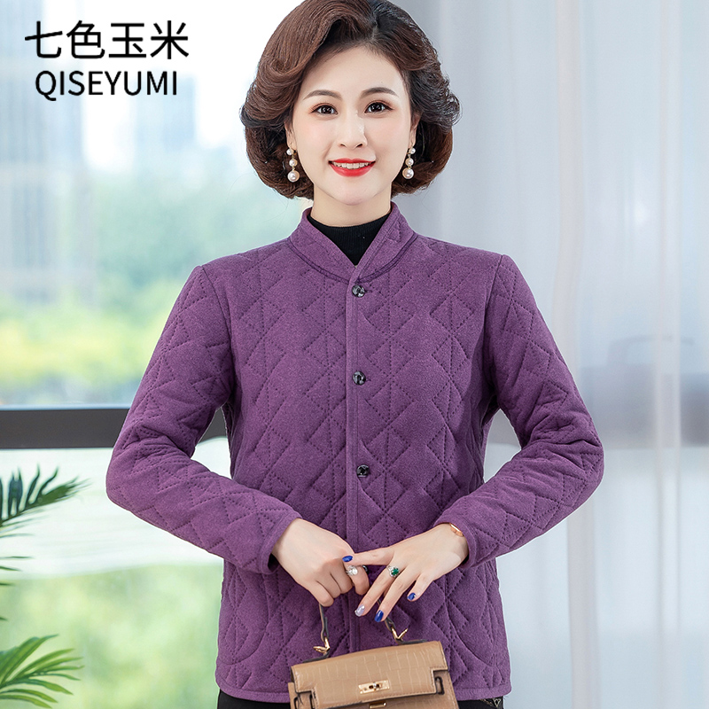 中老年妈妈秋装德绒小棉衣女薄款老年人外套女春秋奶奶棉袄夹棉冬