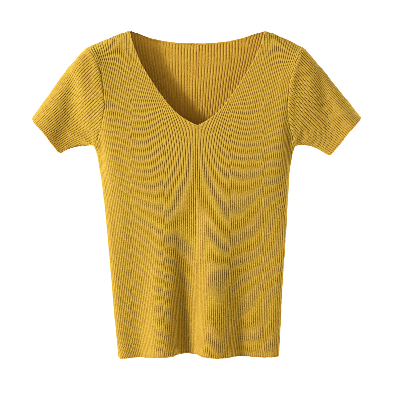 2023夏季韩版新款v领套头冰丝打底衫t恤女修身显瘦针织衫上衣薄款