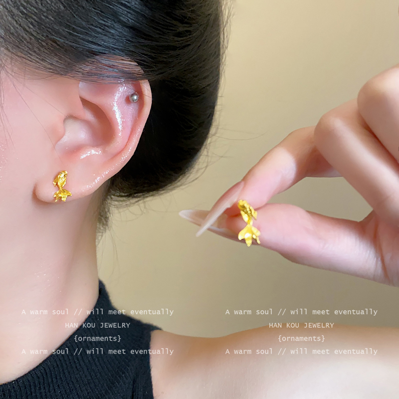 新中式复古金鱼耳钉女2025新款爆款古风锦鲤耳环个性时尚百搭耳饰