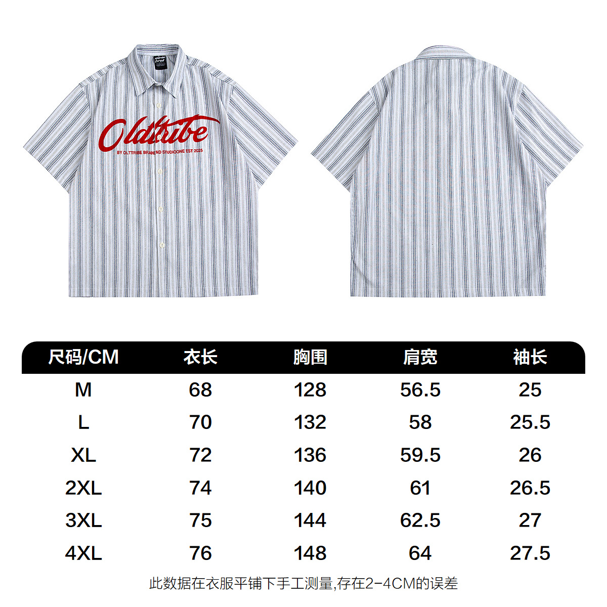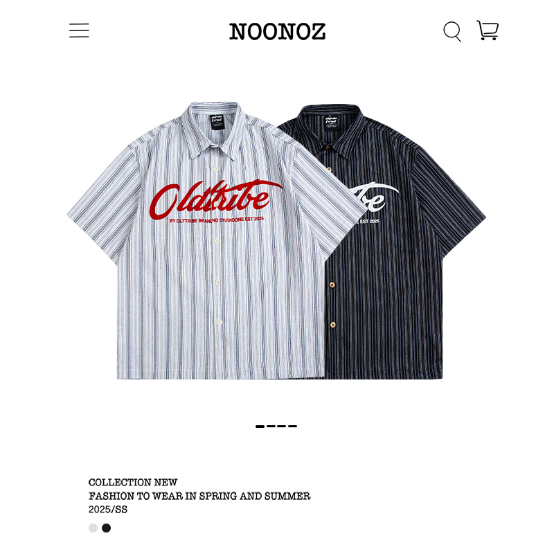 NOONOZ复古美式条纹字母短袖衬衫男女夏季百搭vintage休闲上衣