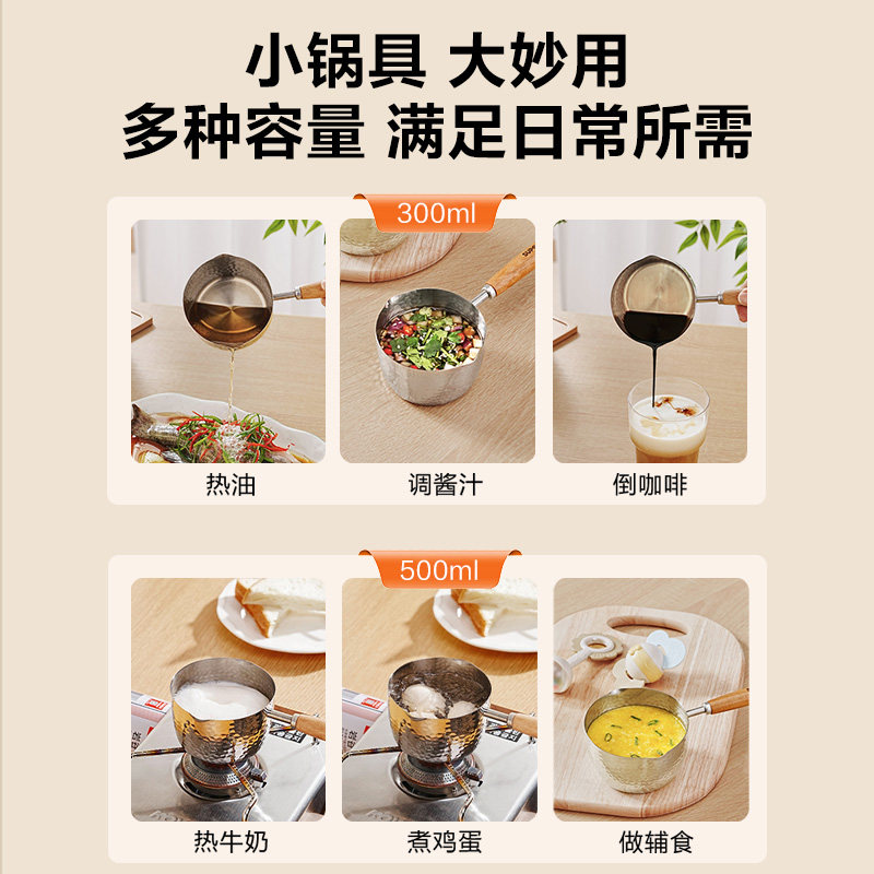 苏泊尔316不锈钢锤纹泼油小锅家用热油小锅专用多功能炝浇油神器