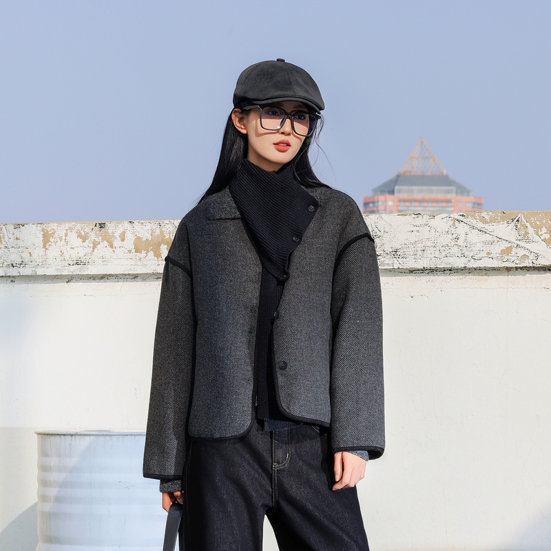 记忆的起点毛呢外套2024冬季新款气质百搭简约薄棉上衣68GD42312W