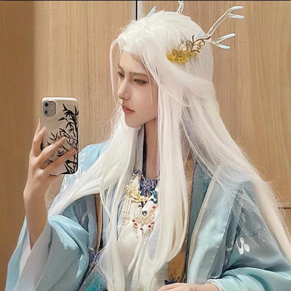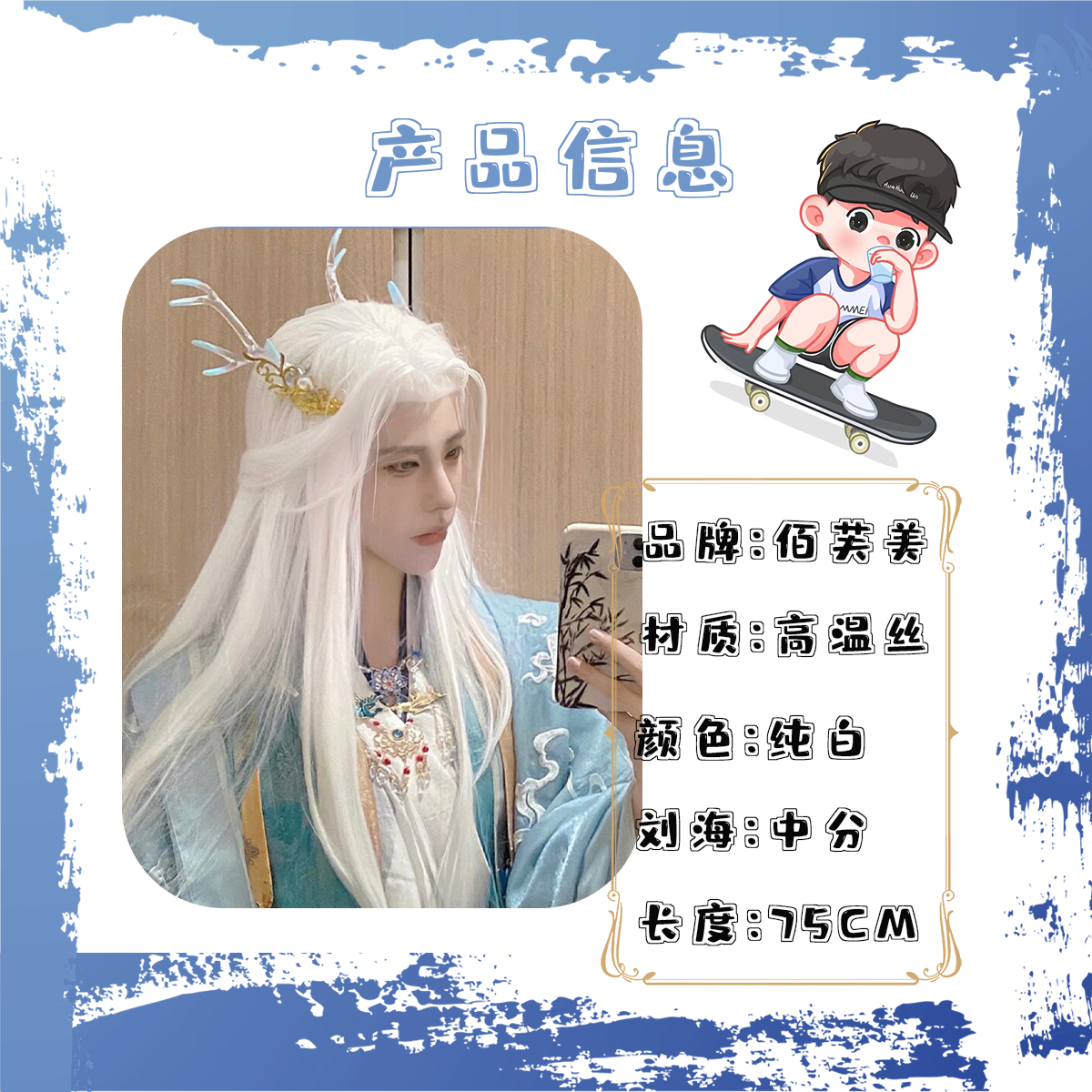 代号鸢左慈同款假发男古风清冷长直发国风银白乙游二次元整顶发套