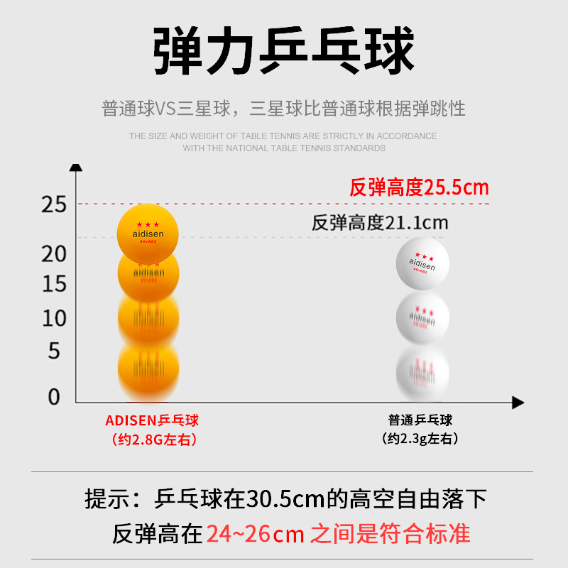 艾迪森三星乒乓球比赛两星训练专用兵兵球室内家用儿童兵乓球正品