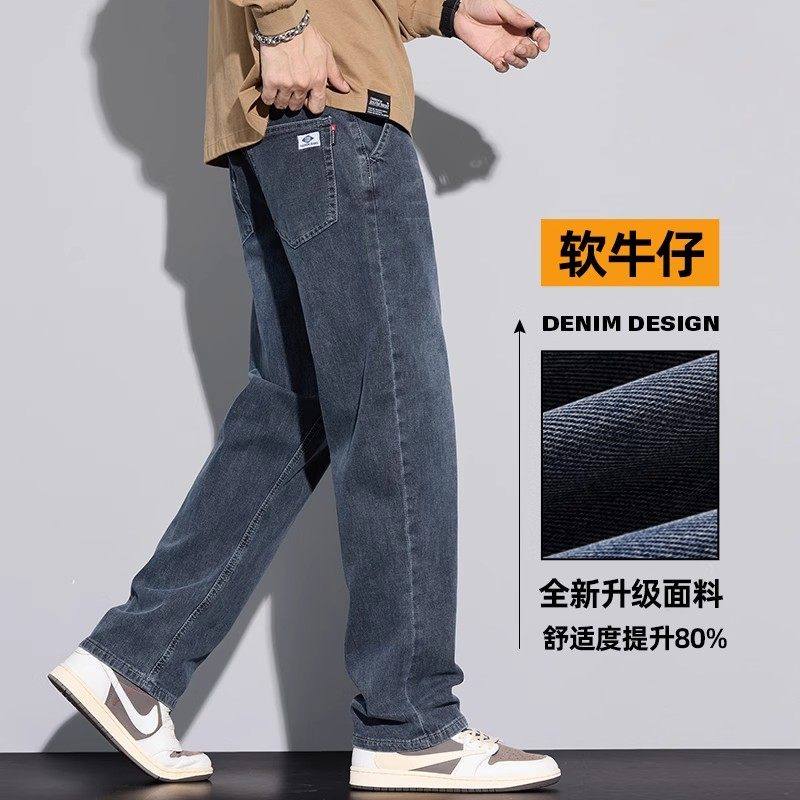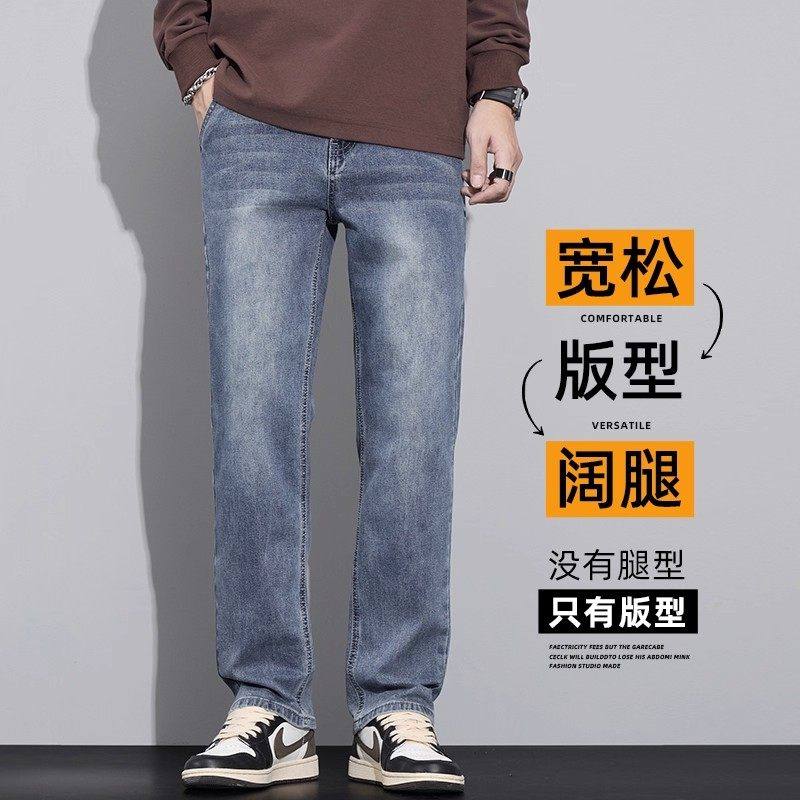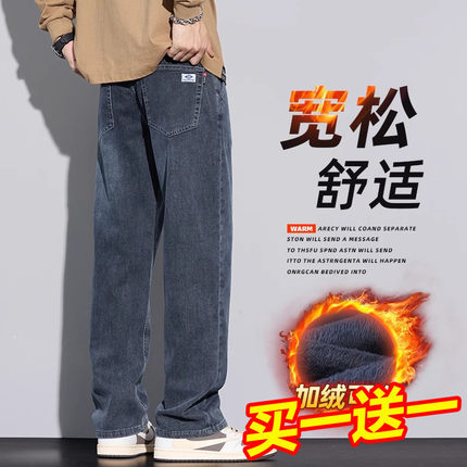 Yishion以纯官方时尚正品秋冬加绒牛仔裤男士宽松直筒男生秋季休