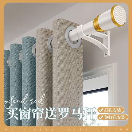 飘窗免打孔安装窗帘全遮光2024新款罗马杆整套卧室阳台客厅遮阳布