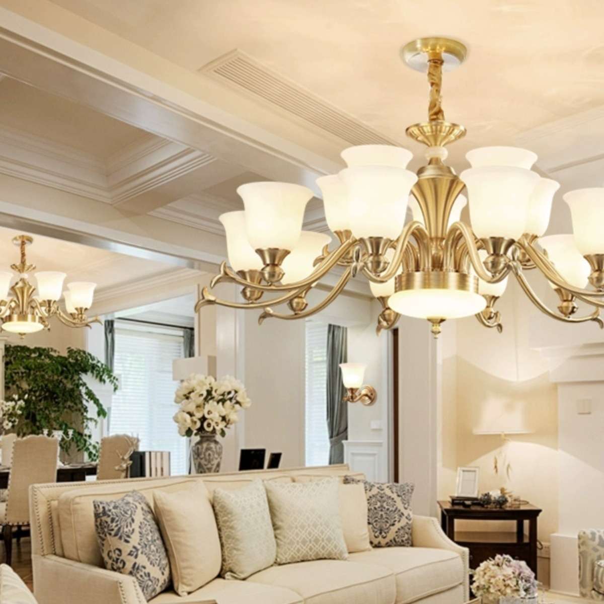 全铜美式吊灯现代简约客厅灯简欧餐厅吊灯卧室灯欧式全铜灯具套餐