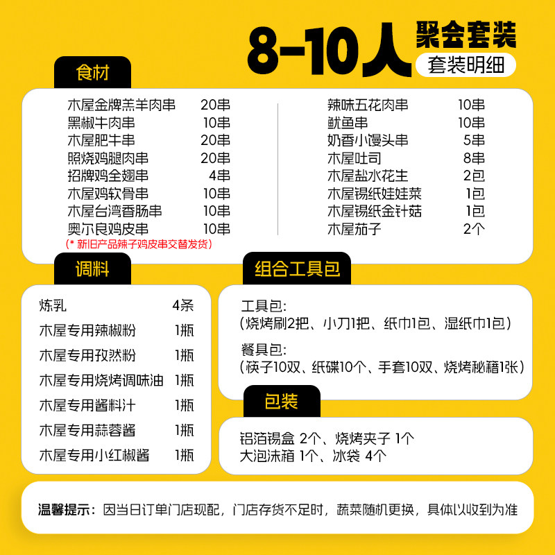 木屋烧烤食材半成品套餐8-10人烧烤材料食材新鲜户外露营牛羊肉串