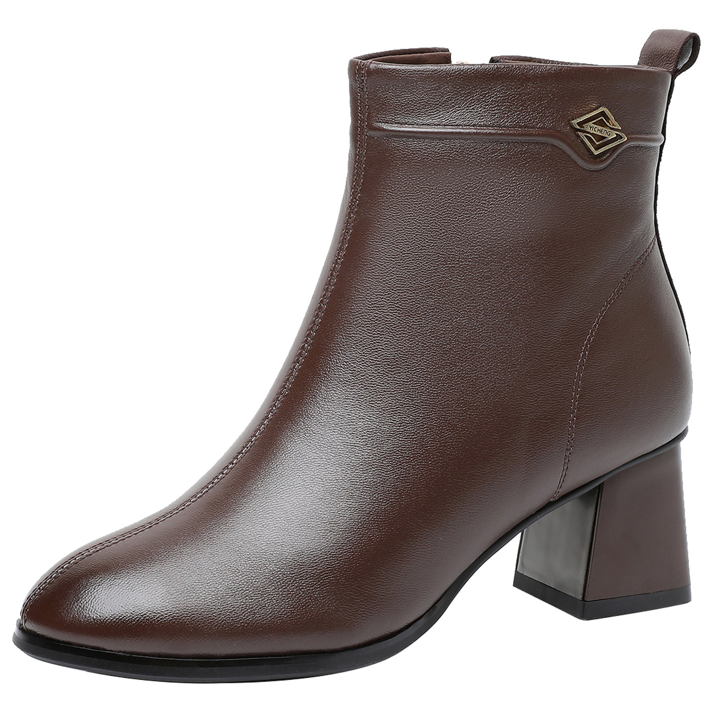 小羊皮粗跟短靴女时尚百搭靴子