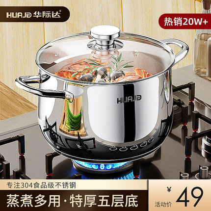 华际达汤锅304不锈钢加厚家用煮锅蒸煮炖粥面奶锅燃气电磁炉煮锅