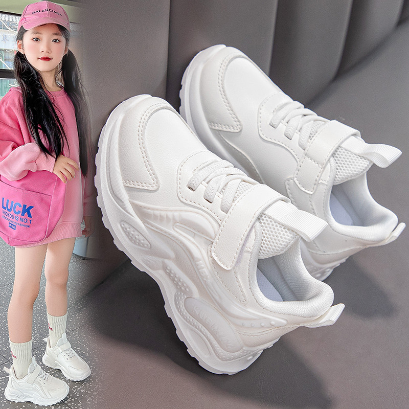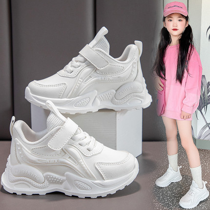 真软皮小白鞋女童男童软底白色运动鞋儿童透气跑步鞋宝宝表演白鞋