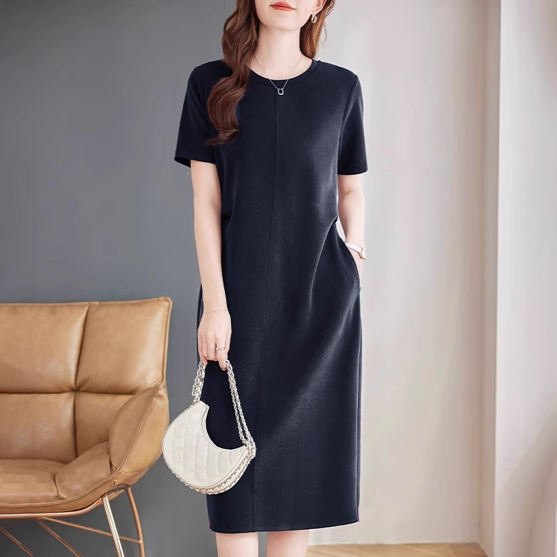 紫色短袖连衣裙夏季新款大码女装洋气胖mm宽松显瘦直筒中长款裙子