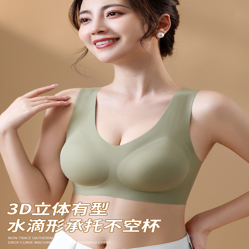 无痕固定杯运动内衣女大胸显小聚拢收副乳大码睡眠背心式文胸薄款