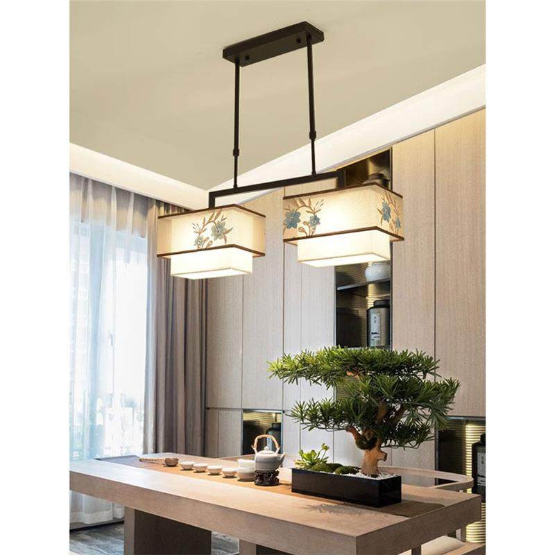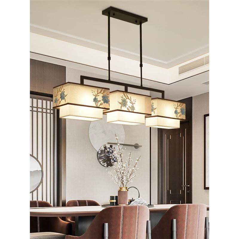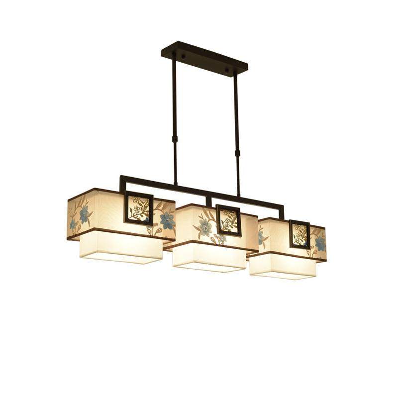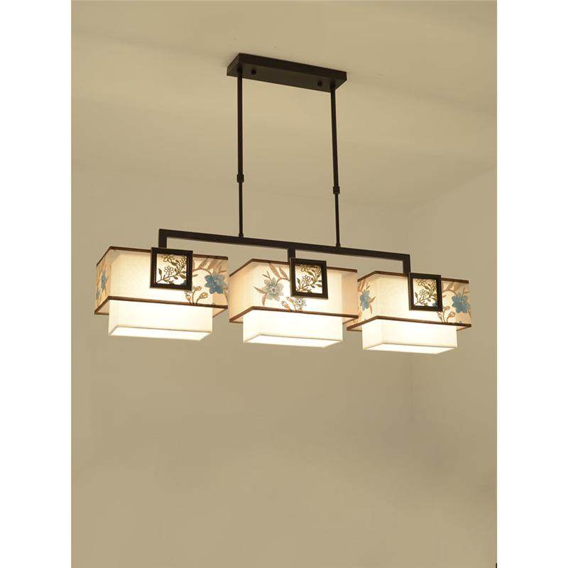 新中式餐厅吊灯长方形三头LED灯具中国风复古吧台茶室前台书房灯