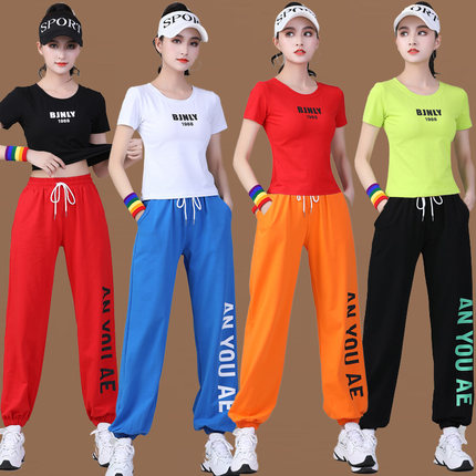 广场舞服装女夏季新款上衣杨丽萍跳舞衣服健身操运动纯棉短袖套装