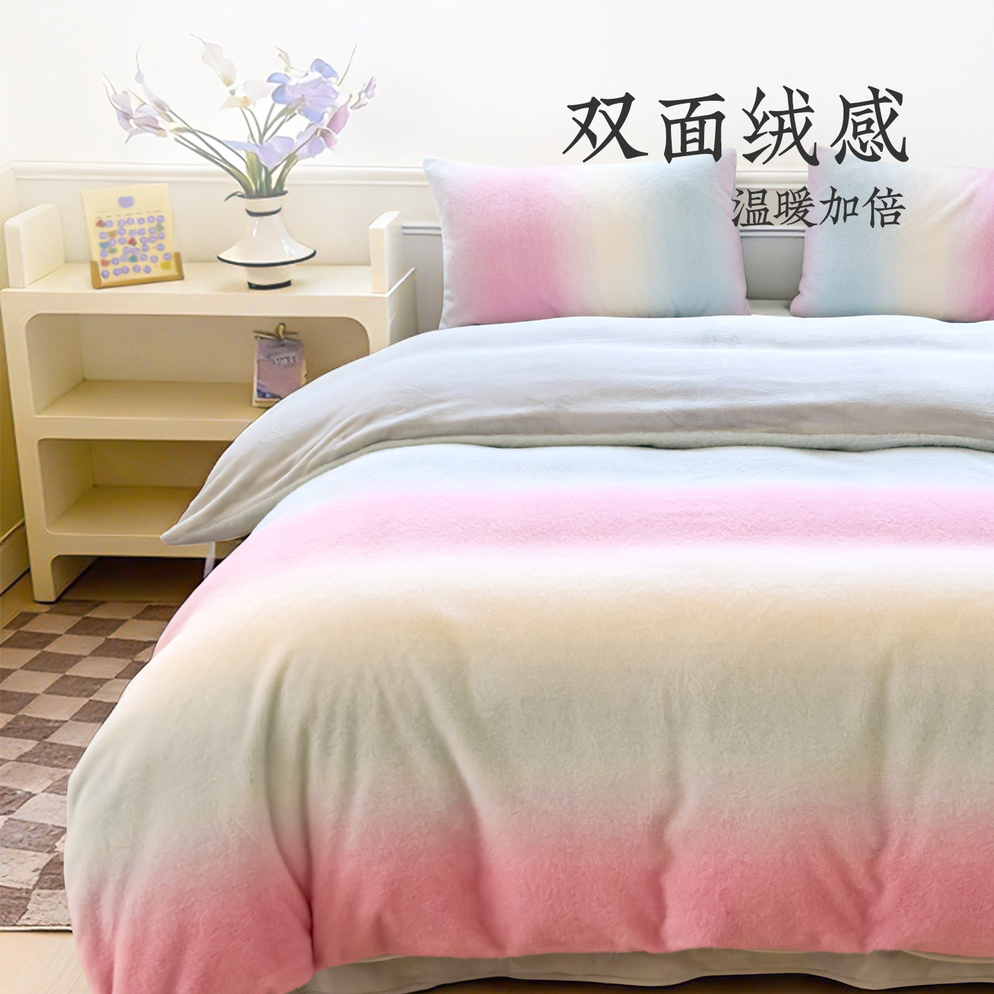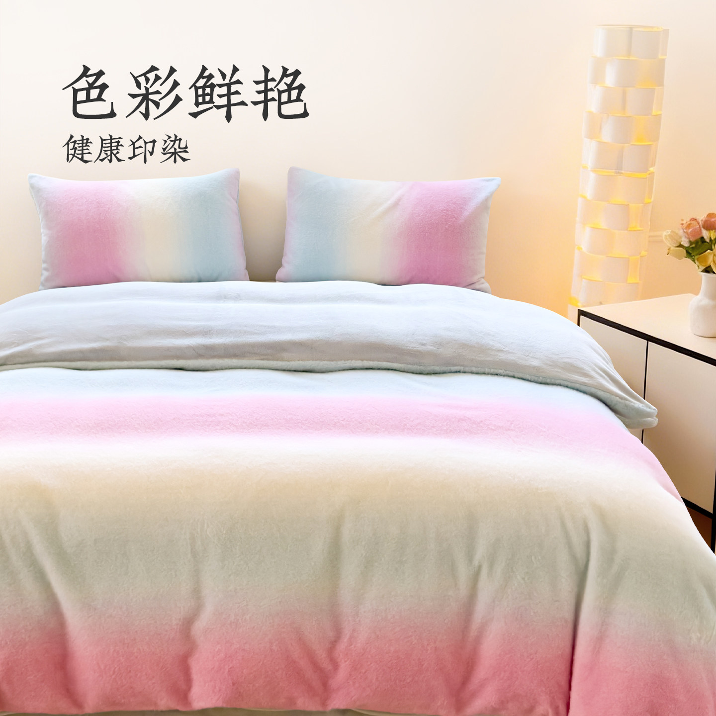 远梦牛奶绒四件套舒绒棉彩虹条纹渐变彩色亲肤柔软保暖床品绒套件