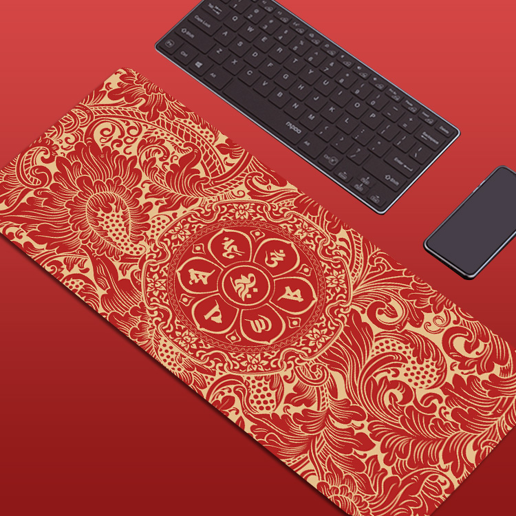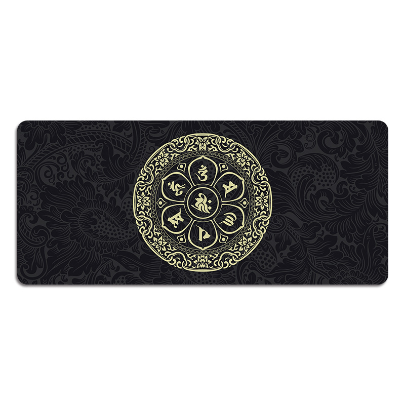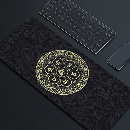 佛系黑色耐脏潮鼠标垫超大护腕锁边电脑键盘书桌垫学生游戏防滑垫