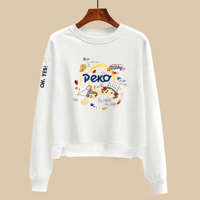 啄木鸟纯棉白色薄款长袖卫衣女2025春秋高腰宽松显瘦上衣打底衫女