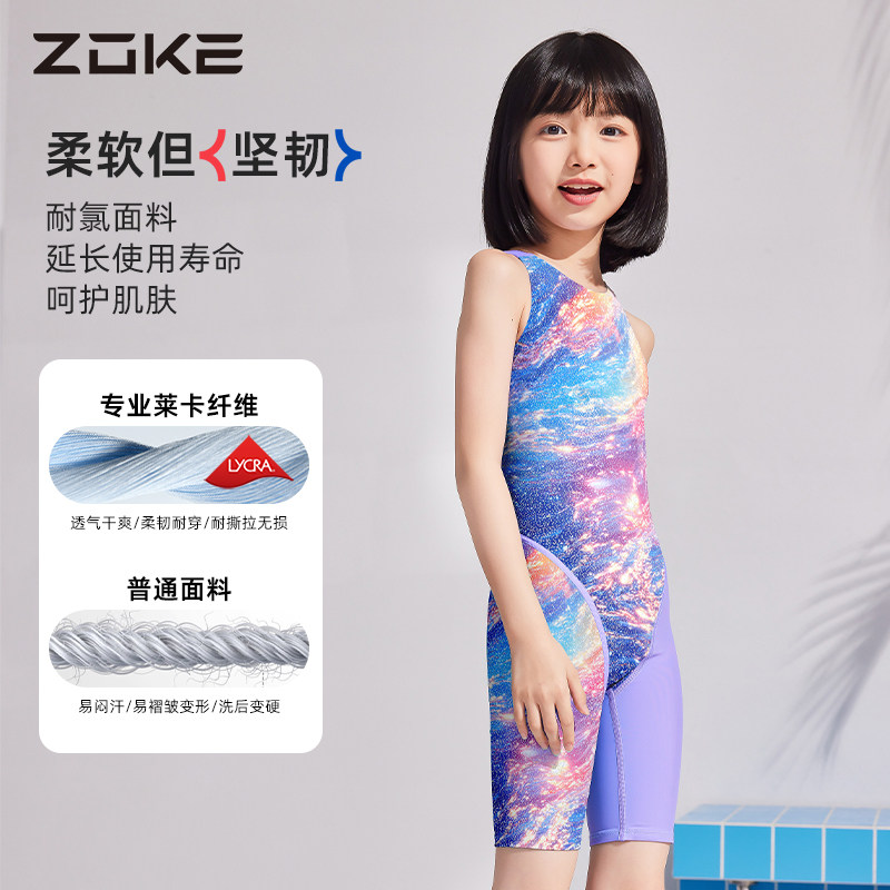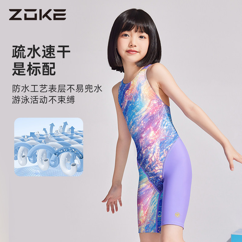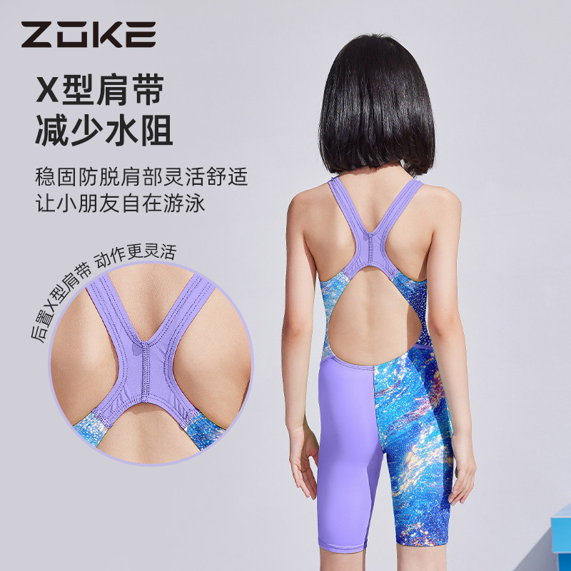 zoke洲克2025新款儿童泳衣女童专业训练竞速连体五分女孩游泳衣