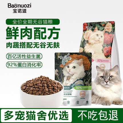 宝诺滋全价鲜肉无谷猫粮乳鸽美毛猫咪幼成猫增肥布偶英短全期通用