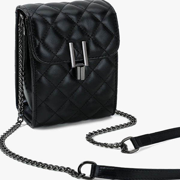 真皮高级感菱格链条手机包包女小香风2025新款软皮单肩斜挎羊皮包