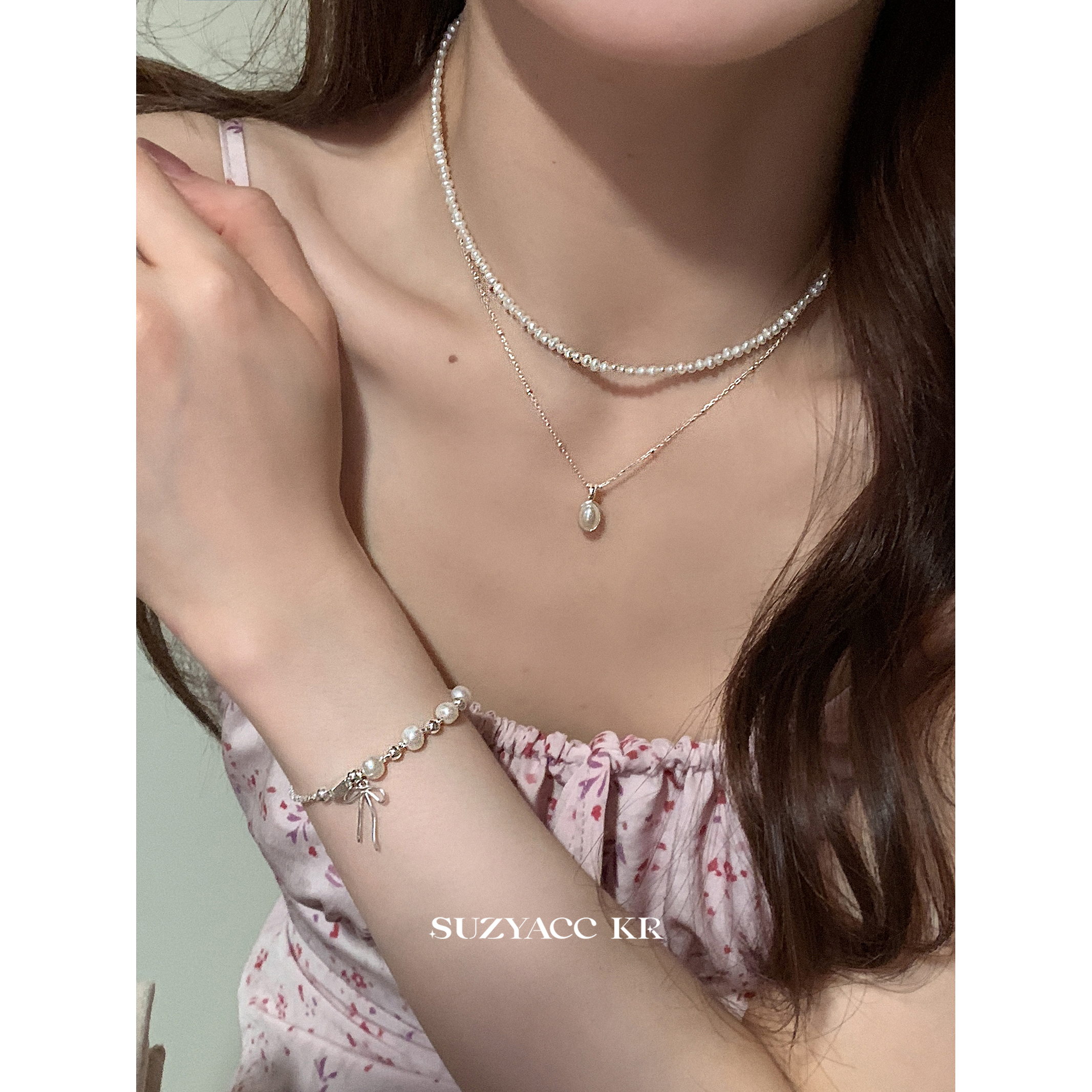 suzyacc kr气质吊坠双层项链2024新款轻奢小众高级感锁骨链女