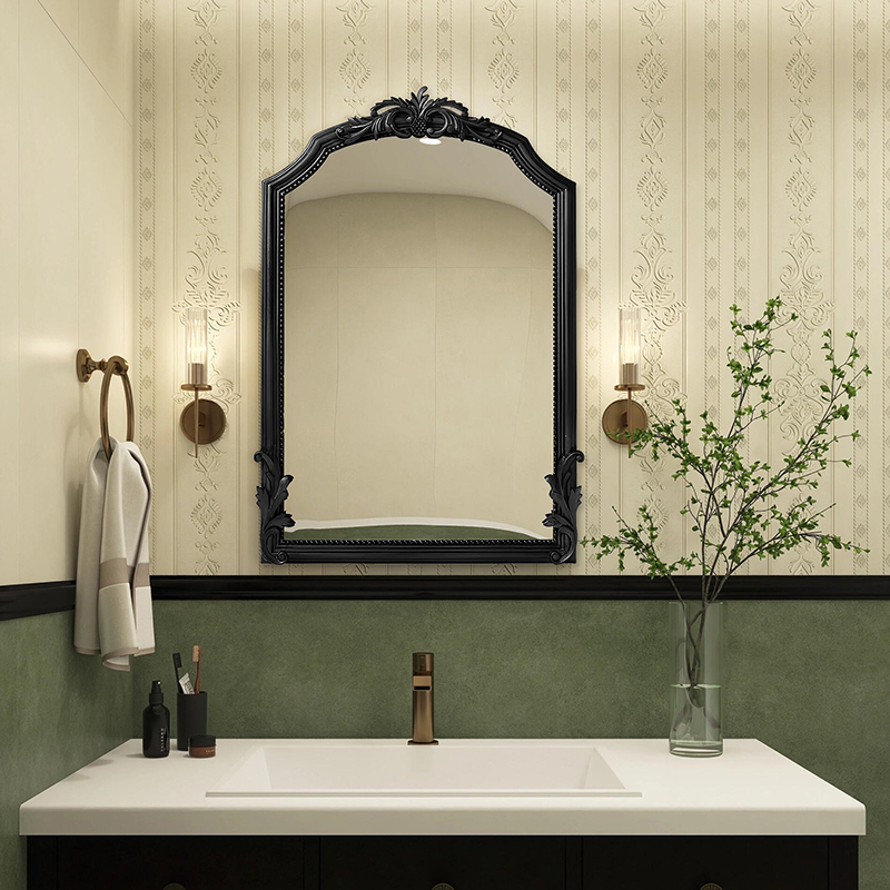 高级法式雕花梳妆镜轻奢卫生间LED发光浴室镜美式壁炉挂墙装饰镜