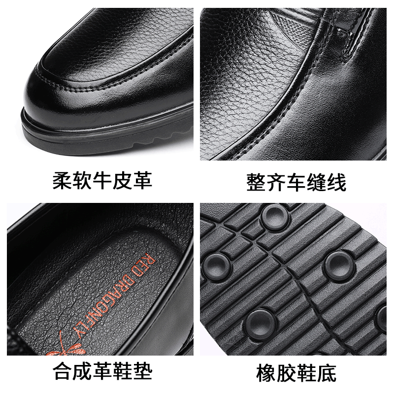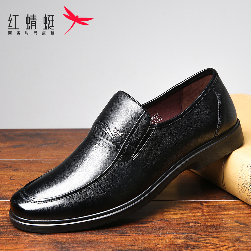 红蜻蜓男鞋春秋季新款商务正装爸爸真皮一脚蹬休闲中老年黑色皮鞋