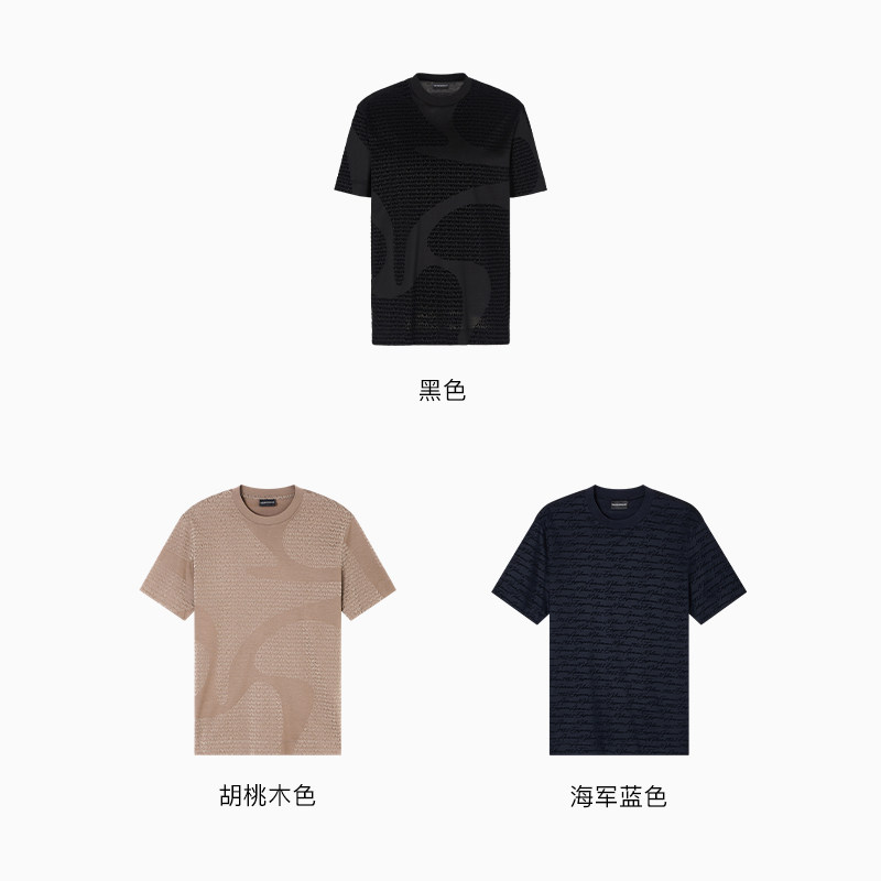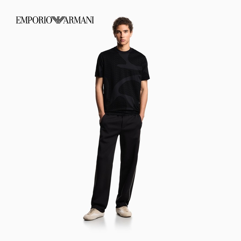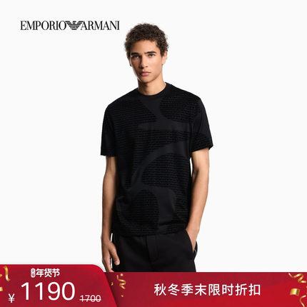 EMPORIO ARMANI/阿玛尼秋冬新款情侣款莱赛尔棉植绒老花短袖T恤