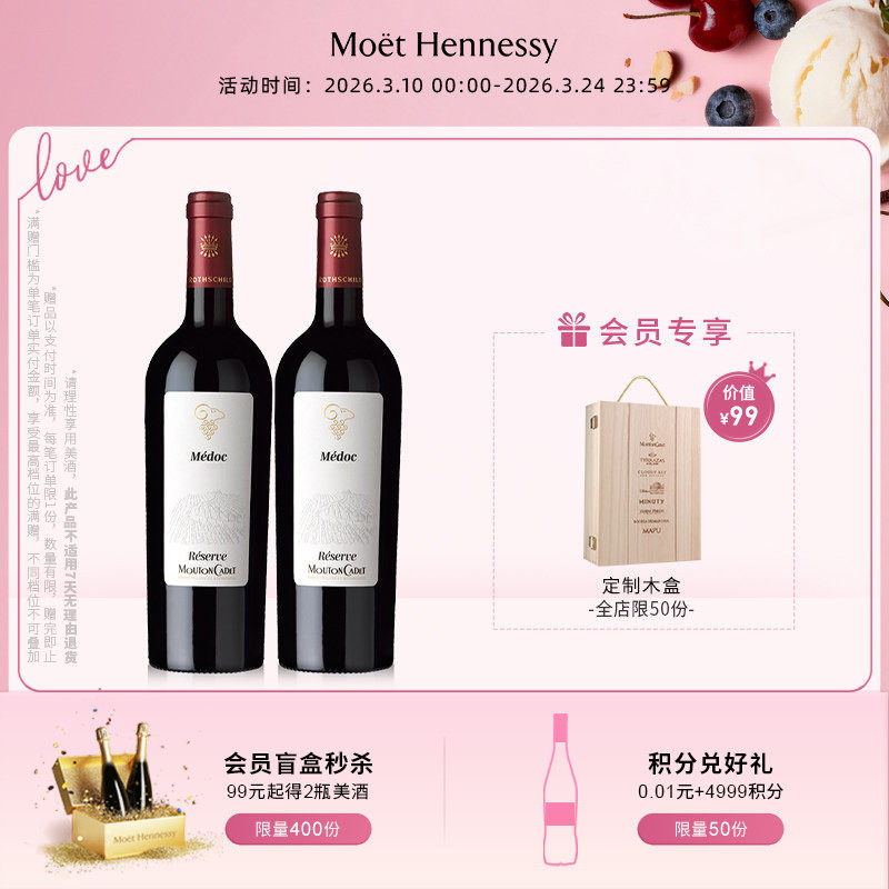 【官方直营】木桐嘉棣珍藏梅多克干红葡萄酒2/6支礼盒法国红酒