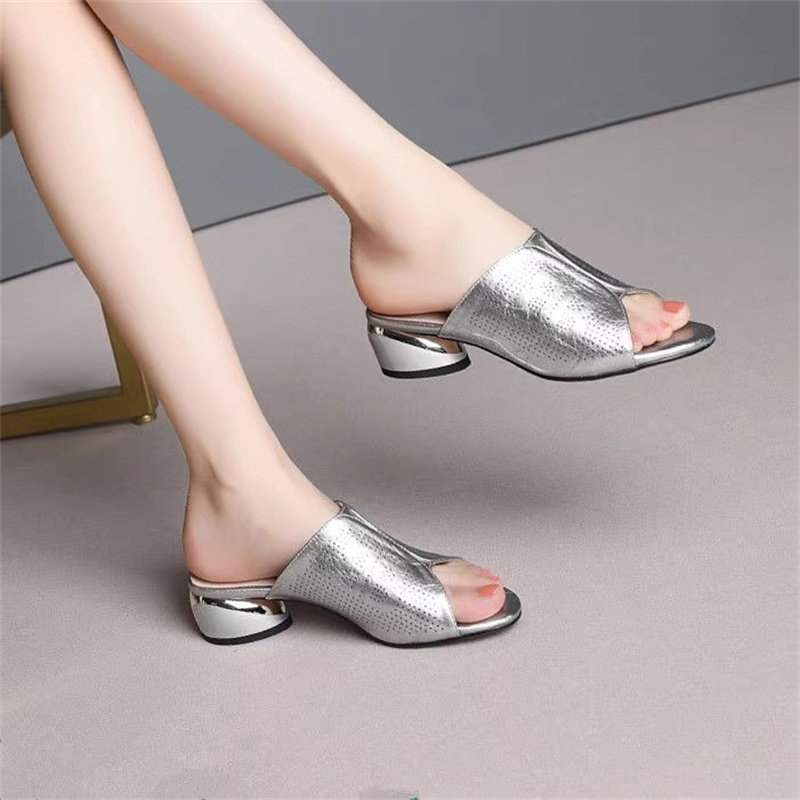 品牌鞋粗跟拖鞋女外穿2025年夏季新款网红凉拖鱼嘴妈妈时尚一字拖