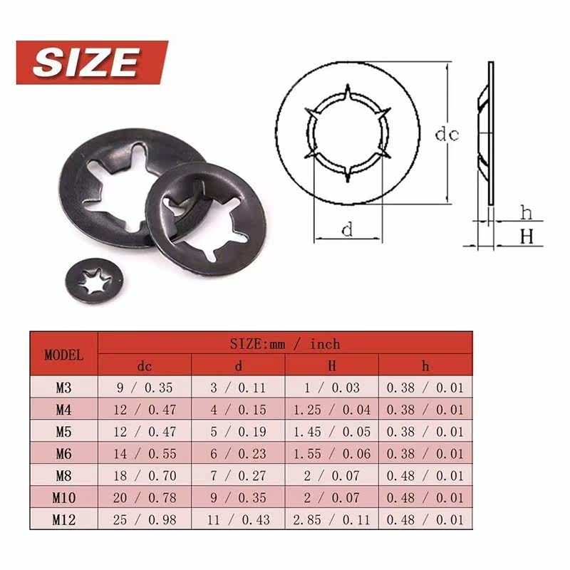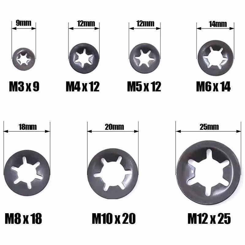 260Pcs M3 M4 M5 M6 M8 M10 M12 Push-on Locking Washers Star N