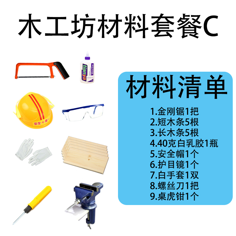 木工坊套装幼儿园儿童手工DIY木匠锤子锯子木刨安全帽工具材料包