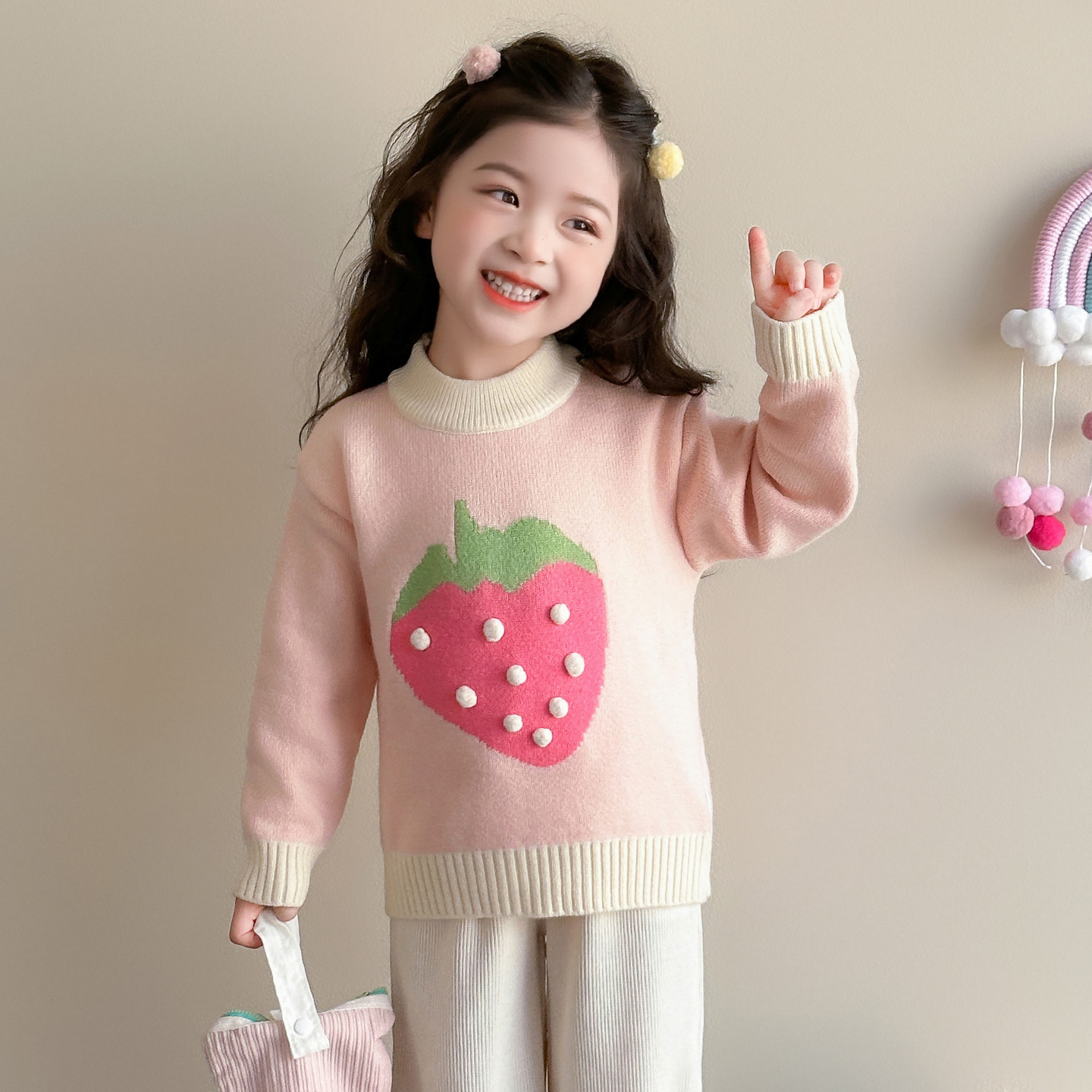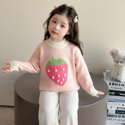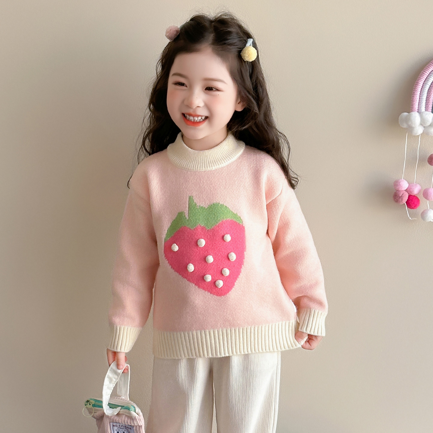 春秋女童毛衣秋冬装2025新款儿童针织打底衫草莓加厚宝宝上衣冬季