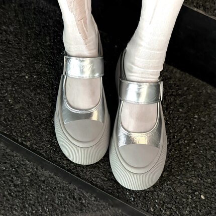 KIKIBEST魔术贴厚底增高一字带玛丽珍单鞋女新款大头浅口松糕鞋