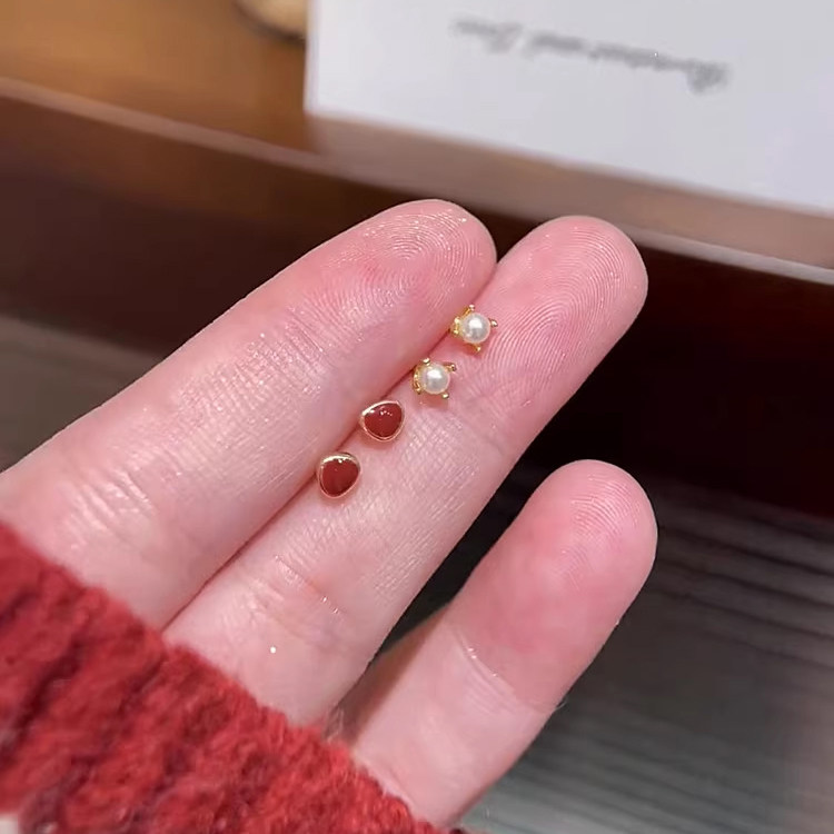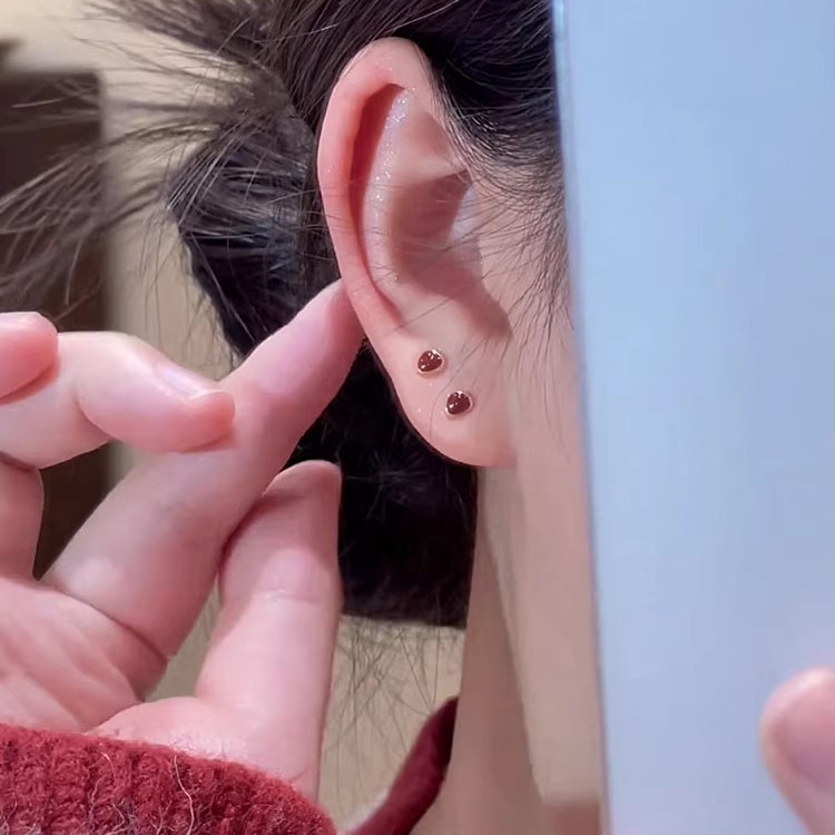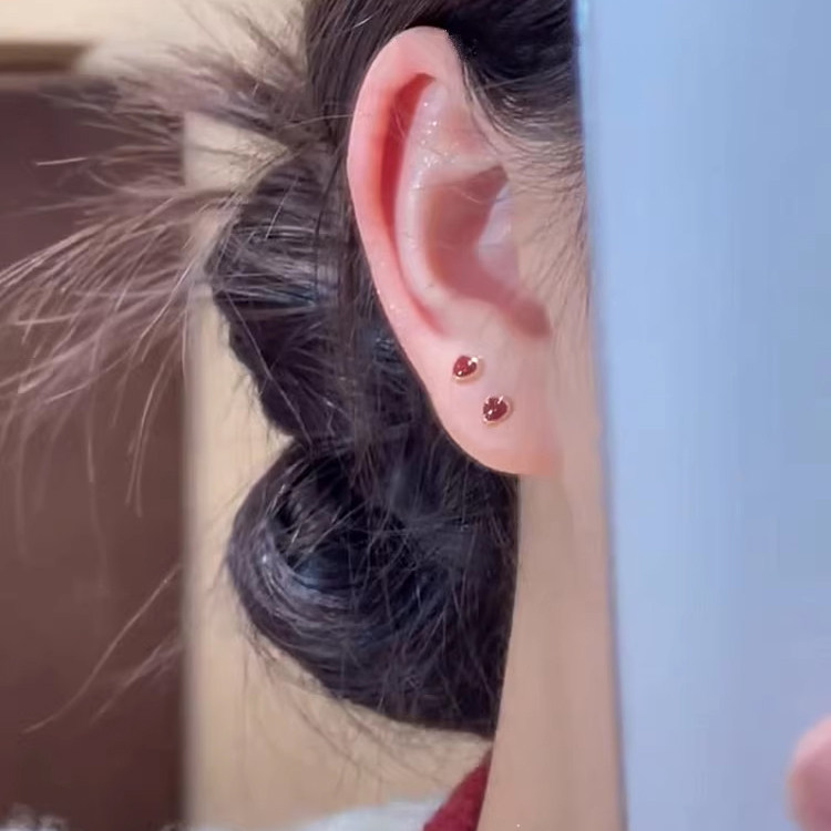 S999纯银针红色小巧耳钉女2025款爆款耳环小众设计高级感百搭耳饰
