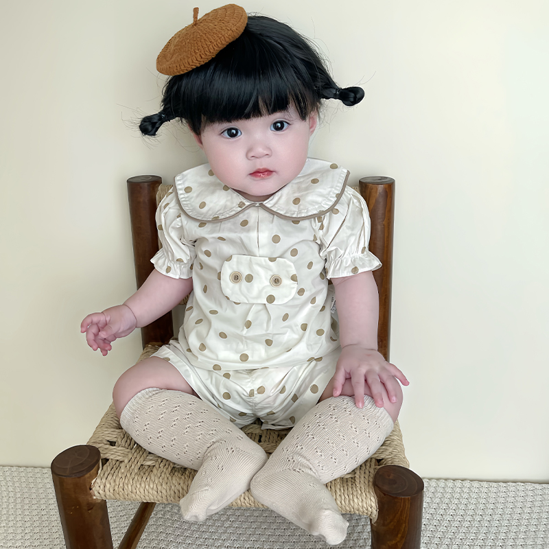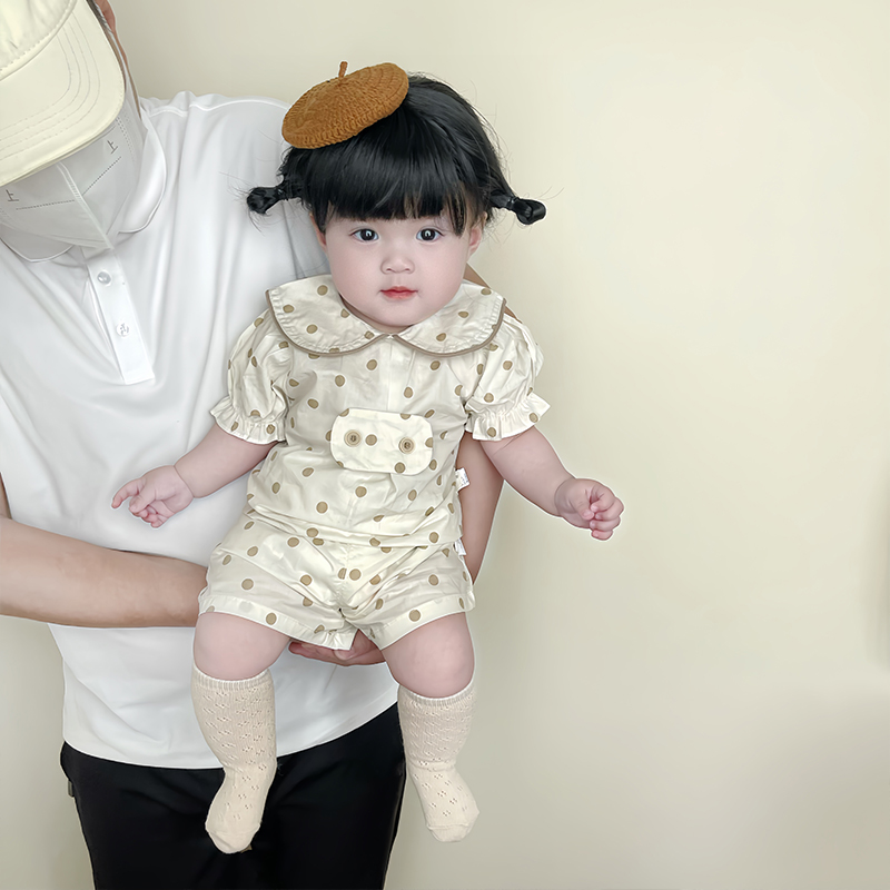 女宝宝夏季可爱波点短袖短裤套装