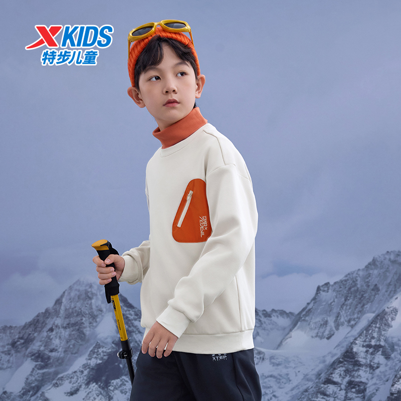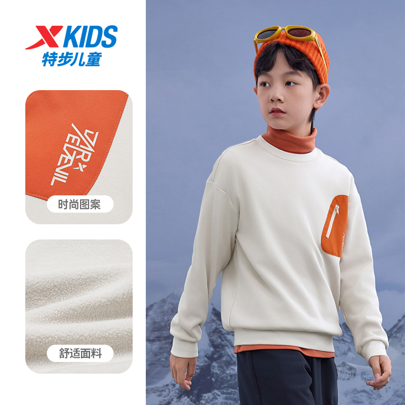 特步童装2024年冬季新款儿童加绒保暖套头卫衣男童圆领上衣休闲服