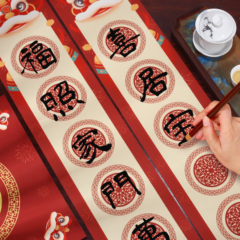 高档2026年新款文创故宫红手写书法对联专用纸空白对联纸自写春联纸加厚蜡染微喷万年红宣纸福字纸斗方红纸