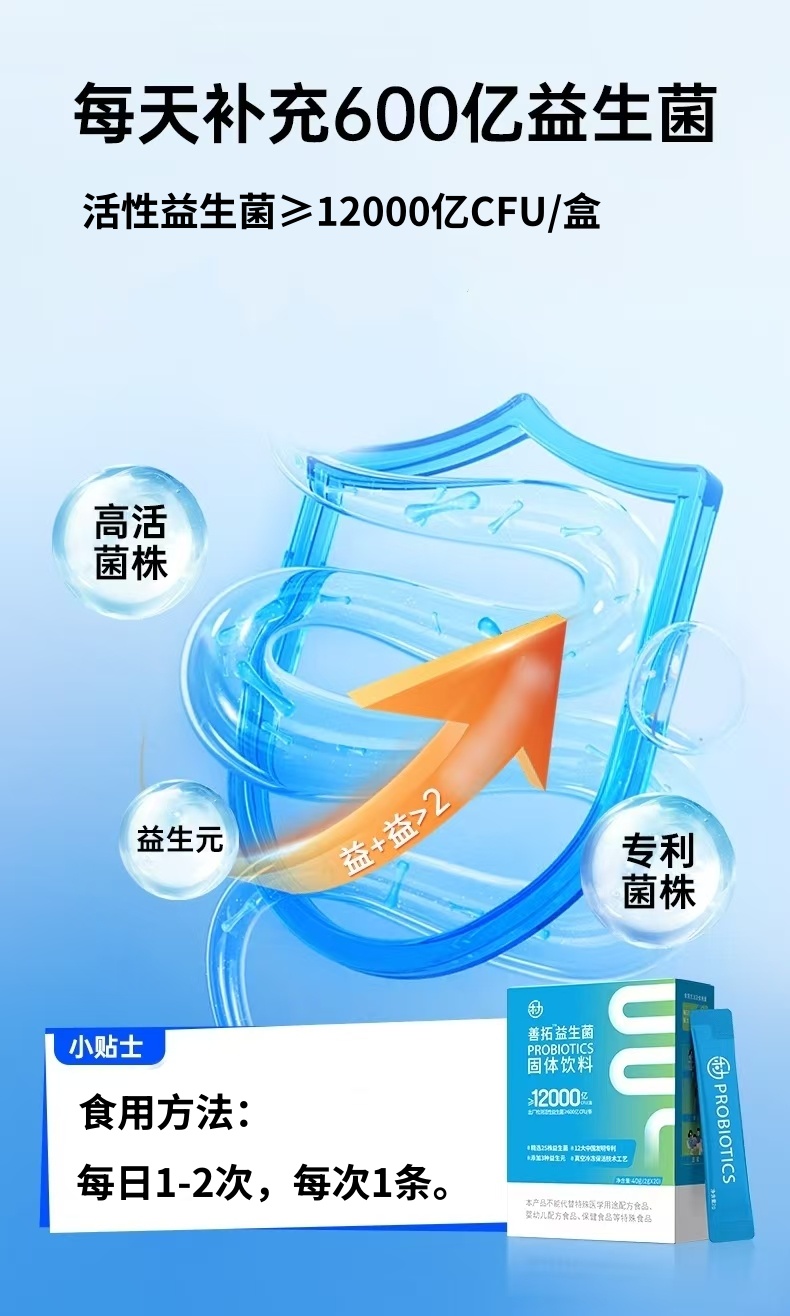 【买1送1】乐力善拓益生菌大人中老年人肠胃肠道冻干粉活性元