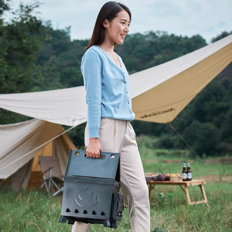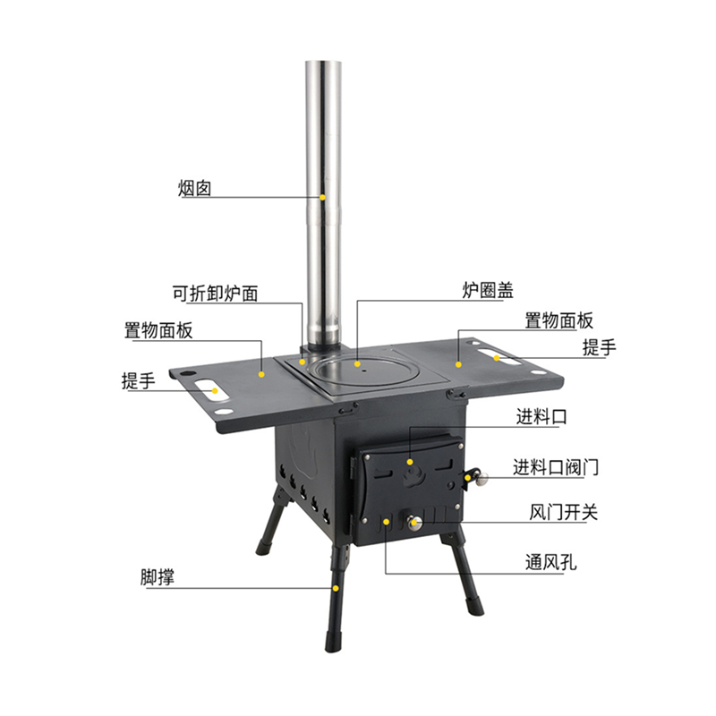 户外野餐多用途便携式野营铁板烧野营柴火炉取暖烧烤炉柴火灶炉具