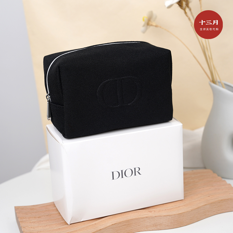 美妆柜台赠品 Dior迪奥黑色牛仔帆布长方型化妆包简约收纳包