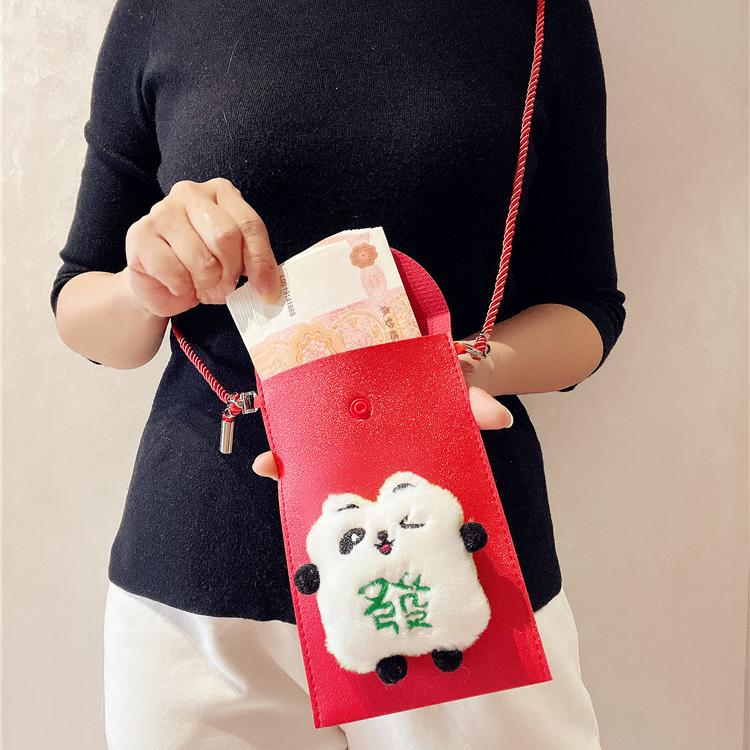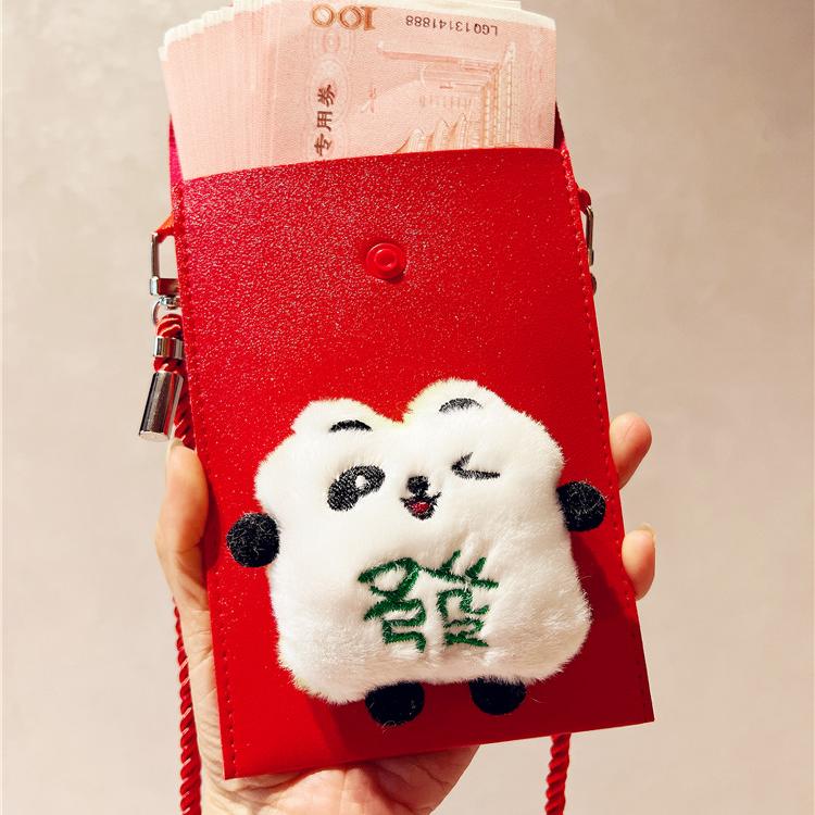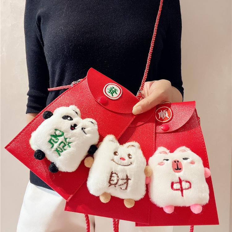 新年发财麻将卡通毛绒红包儿童过年春节压岁钱收纳创意皮质利是封