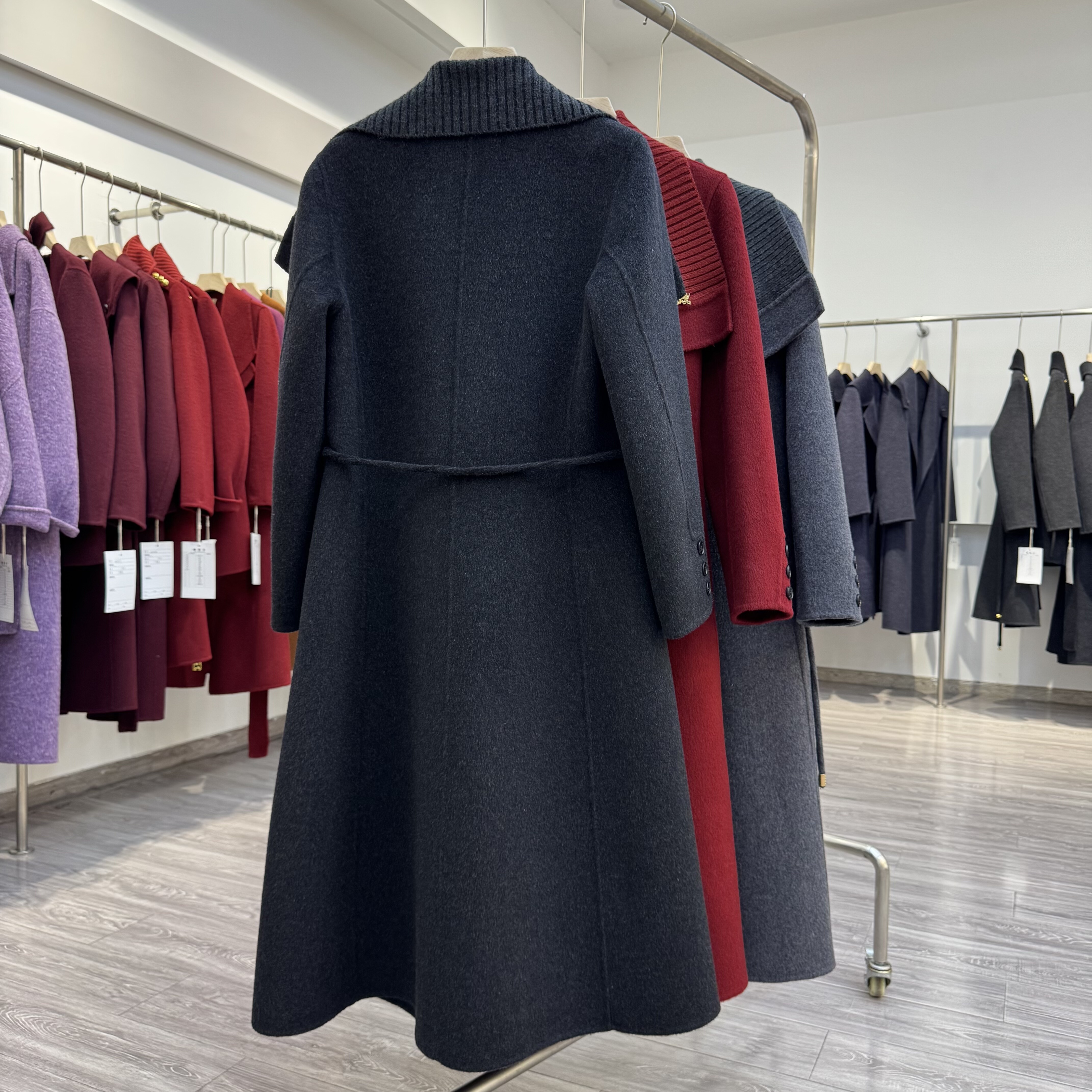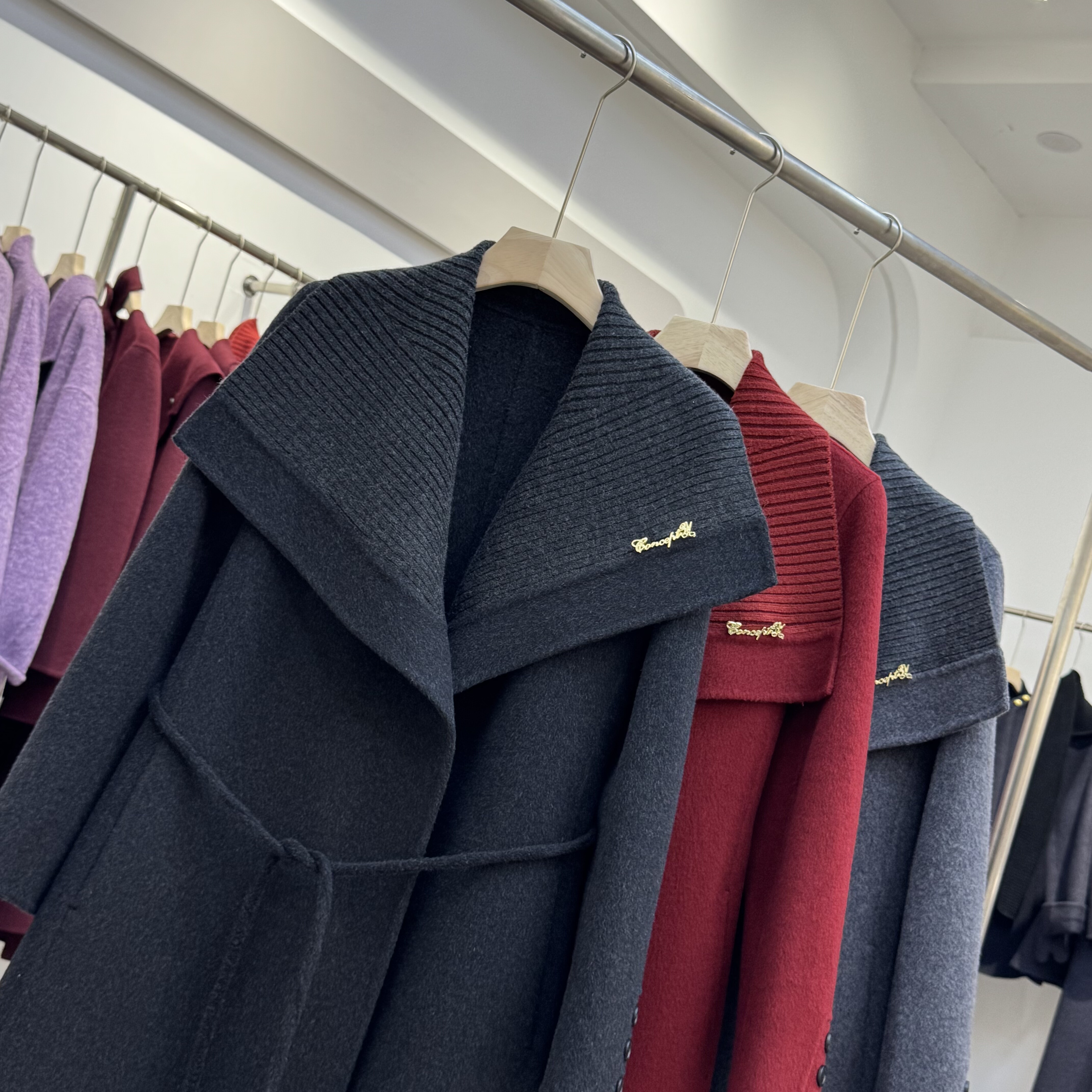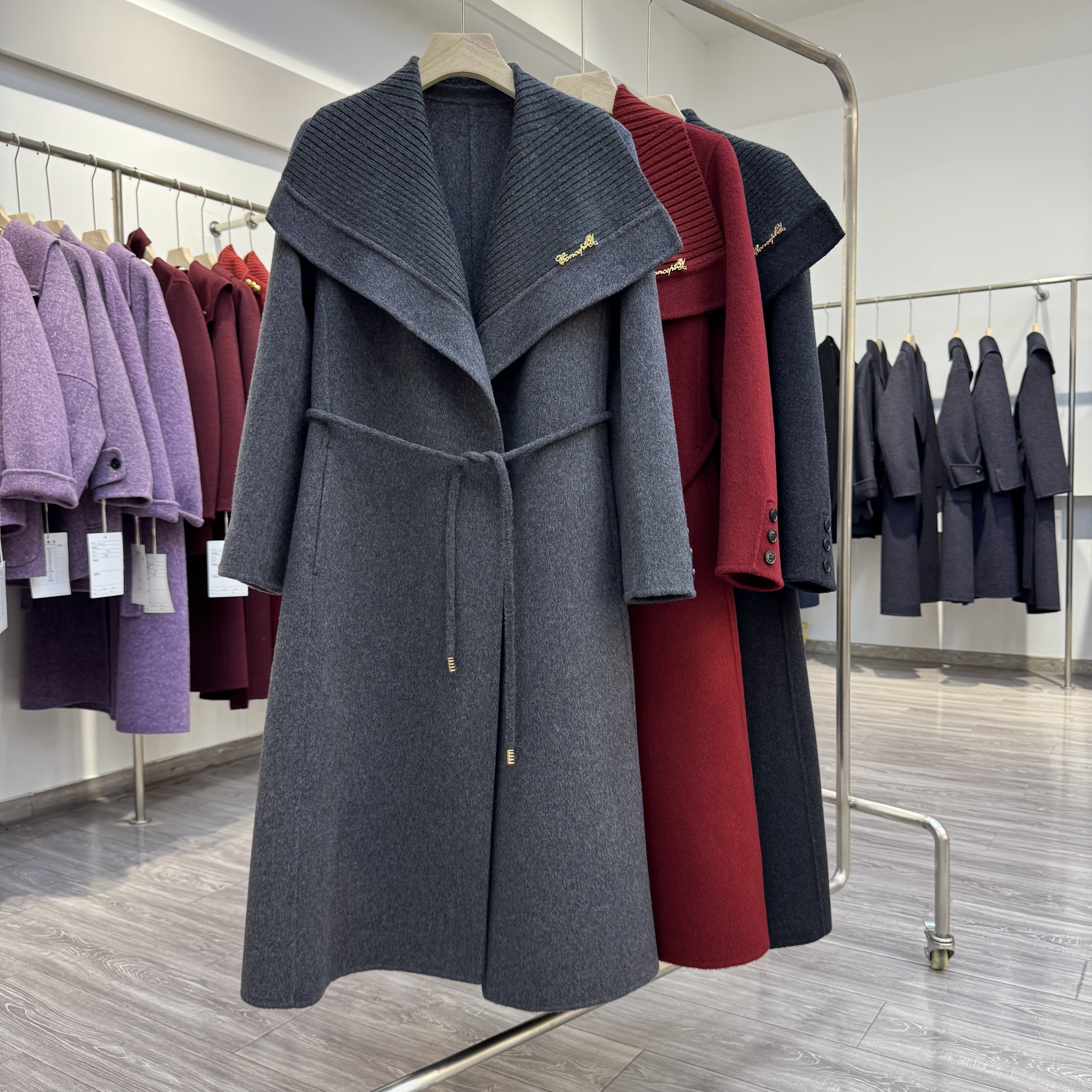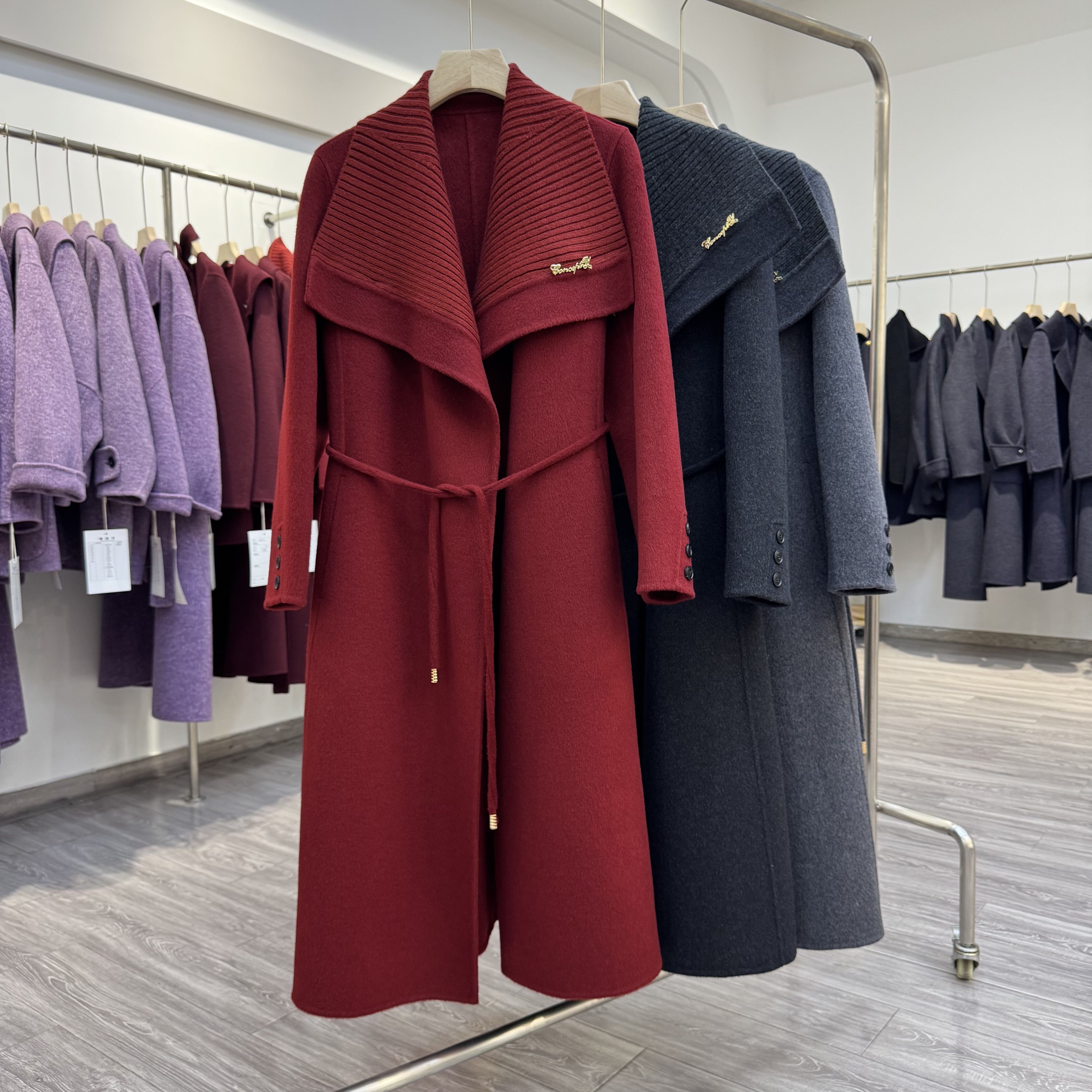 正肩双面羊绒大衣女中长款2025秋冬新款高级感修身大翻领毛呢外套