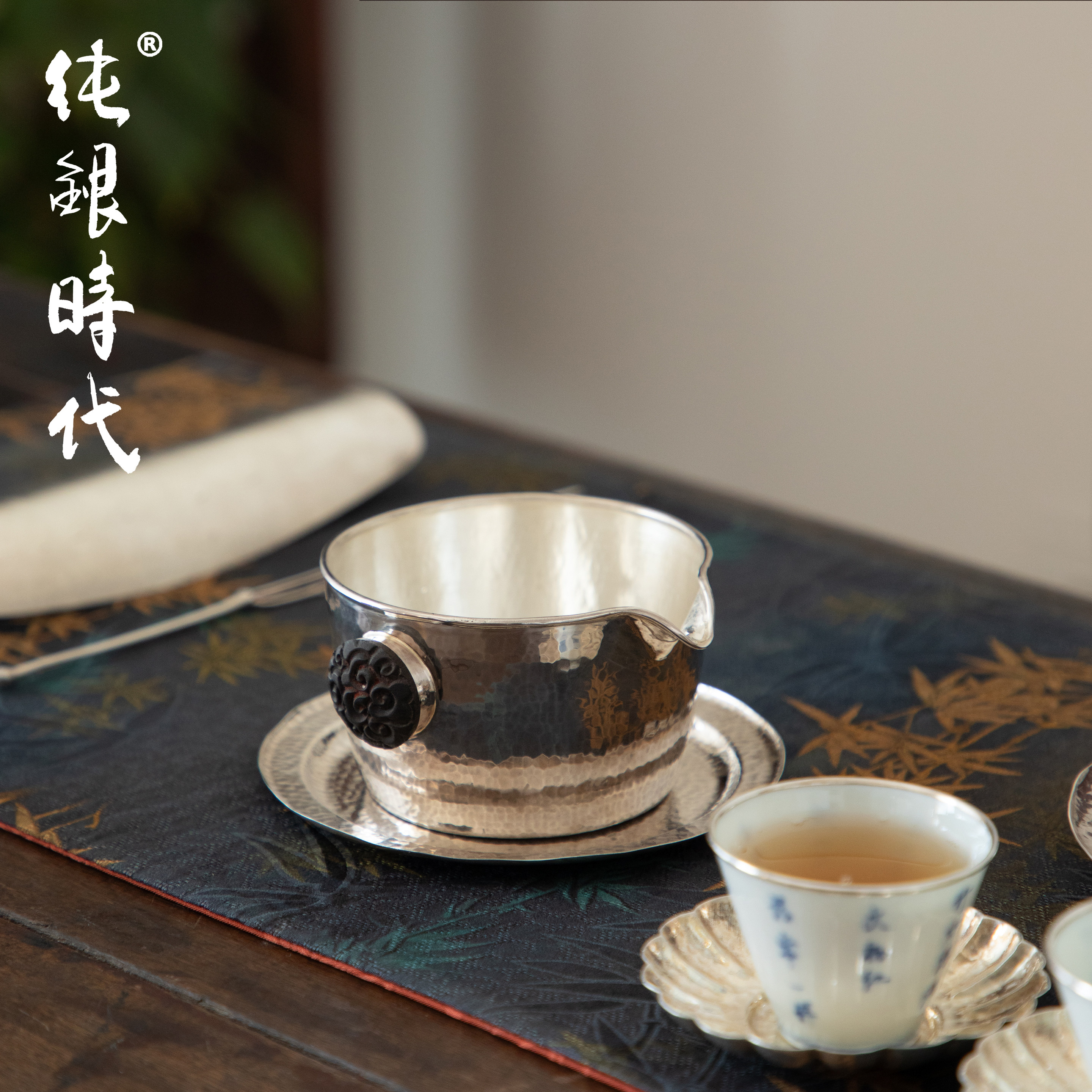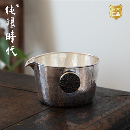 纯银时代触云公道杯纯银999防烫手工祥云手柄功夫茶具分茶器150ml