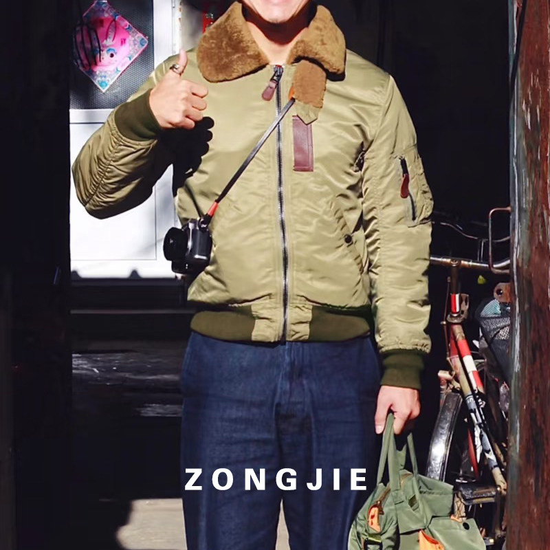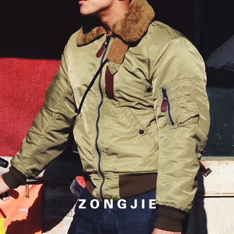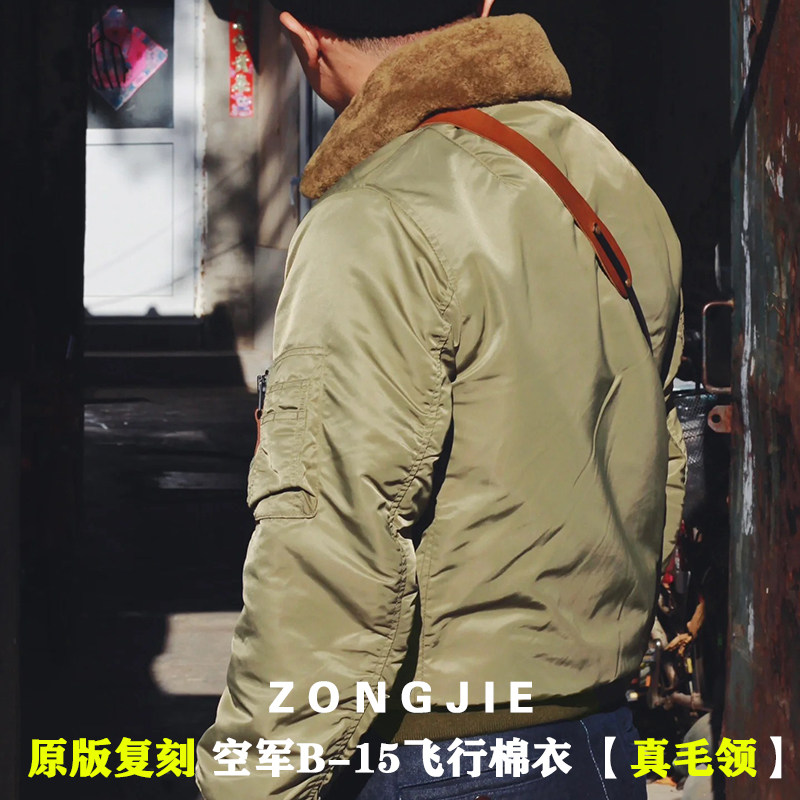 原版复刻B15美式复古空军夹克飞行员加厚真毛领冬季棉衣外套男女