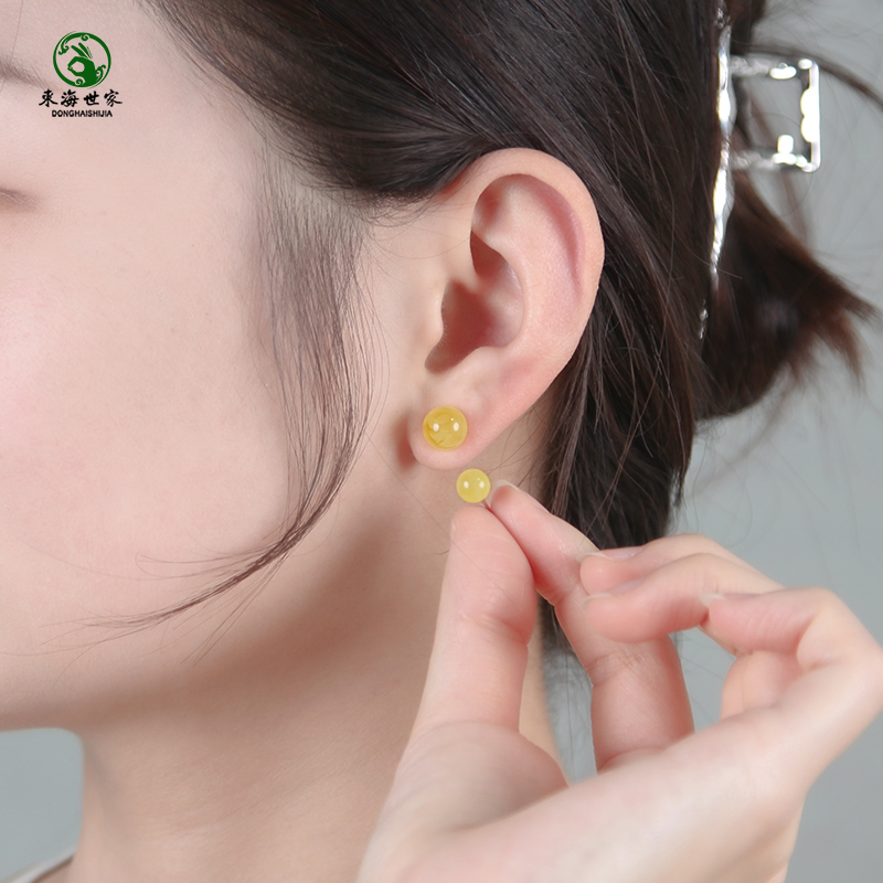 东海世家鸡油黄蜜蜡耳钉女