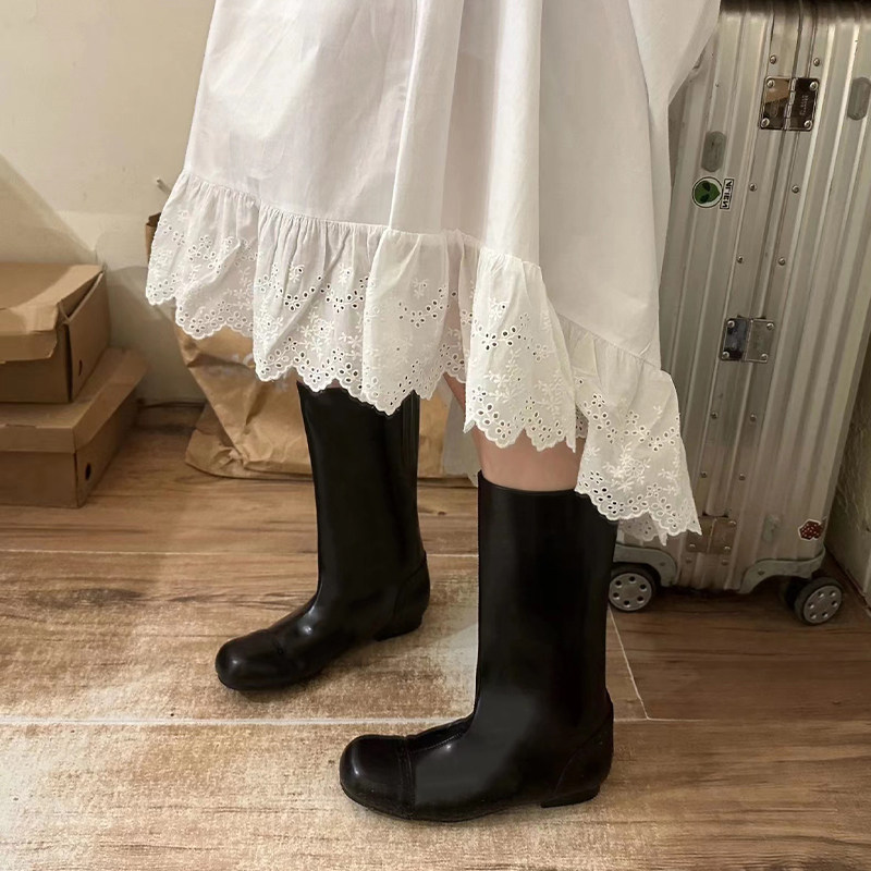 中筒马丁靴平底低跟真皮短靴