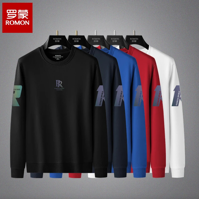 罗蒙男士卫衣大码宽松圆领无帽长袖莱斯R字印花2025新款秋冬季厚